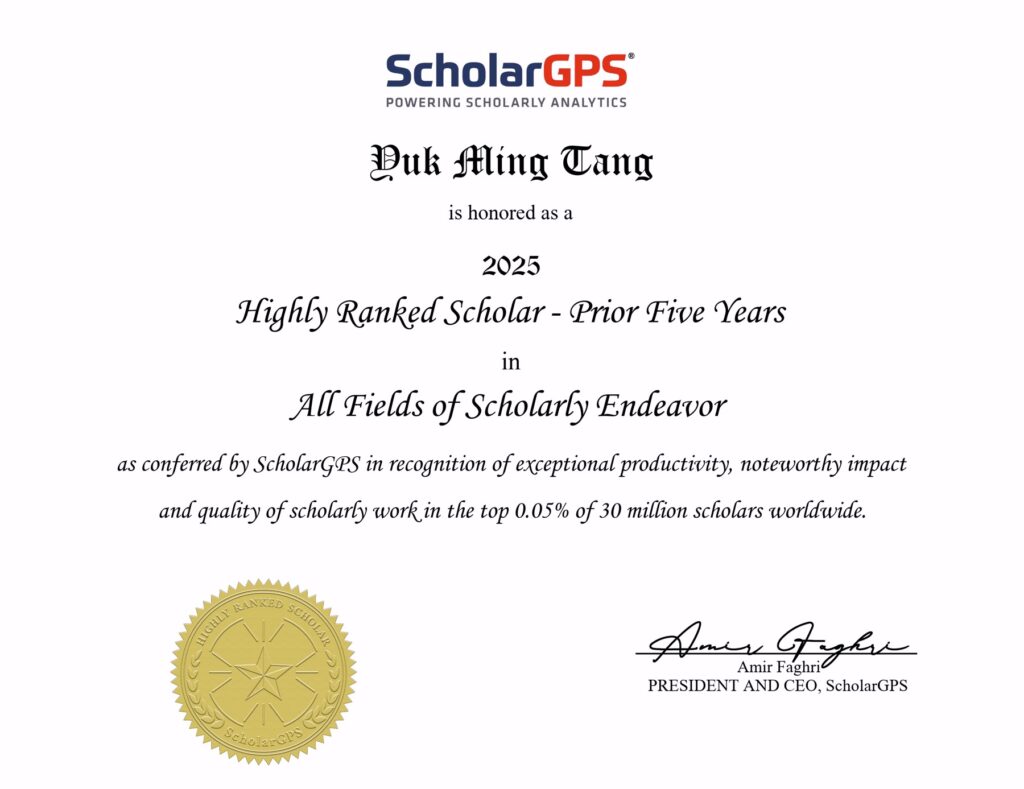 Ir. Dr. YM Tang Recognized as a 2025 ScholarGPS Highly Ranked Scholar